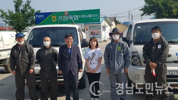 (거창/최병일) = 거창군 농협거창군지부(지부장 신용인)는 17일 오전 거창축협 공동방제단(조합장 최창열)을 찾아 AI 확산방지를 위해 휴일도 반납하고 근무하는 직원들을 격려하며 철저한 방역을 당부했다.