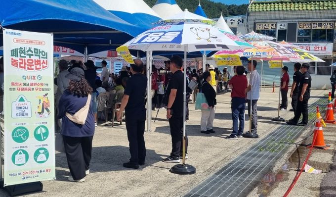 행사장에 설치된 파라솔 그늘을 이용하던 한 시민은 장바구니를 받으며 “폐현수막으로 이렇게 다양한 재활용품이 만들어지는 것에 놀랐다. 폐현수막의 재활용 가치에 대해 다시 한 번 생각하게 된다”고 말했다.
