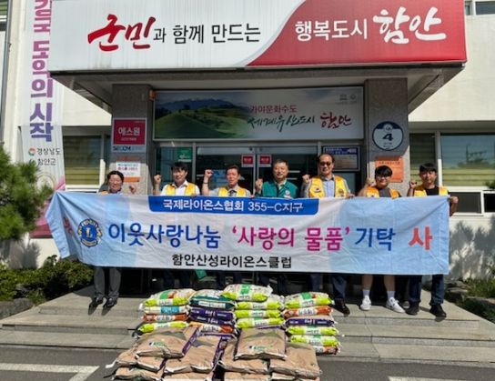 [경남도민뉴스=이상민기자] 함안산성라이온스클럽(회장 박성우)는 지난 14일 백미 1,050kg를 칠원읍사무소(10kg 25포, 20kg 10포), 칠서면사무소(10kg 30포), 칠북면사무소(10kg 30포)에 기탁했다.