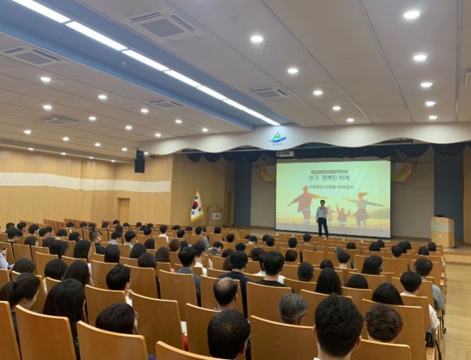 이번 교육은 인구와미래정책연구원 이우택 강사를 초청해‘인구 변화의 이해와 미래 준비’를 주제로 △인구 변화에 따른 미래 예측과 관점 제시 △지방 소멸의 원인 △인구 감소로 인한 경제적 영향 △지역 균형 발전의 중요성 등의 내용으로 진행됐다.