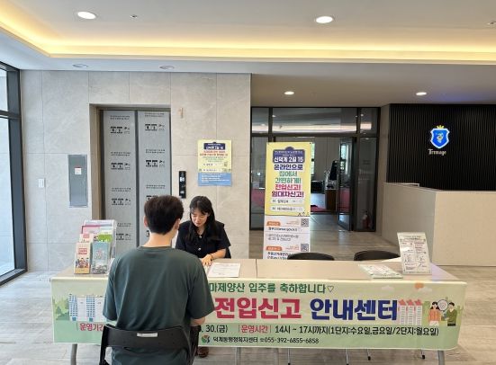 [경남도민뉴스=최미정기자] 양산시 덕계동행정복지센터는 오는 16일부터 덕계 트리마제1․2단지아파트 1,469세대의 입주에 따라, 신규 입주민을 위해 8월 16일부터 30일까지 약 2주간 ‘찾아가는 전입신고 안내센터’를 운영한다고 밝혔다.