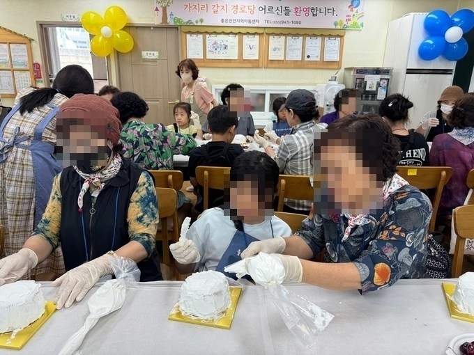 [경남도민뉴스=백형찬기자] 좋은인연지역아동센터는 14일(수)(제1차) 좋은인연지역아동센터 1층 집단지도실에서 어르신들과 아동들(좋은인연지역아동센터 이용 아동(20명), 가지리 갈지 경로당 어르신들(20명))이 함께 케이크를 만들어 보며 세대 간의 차이를 이해하며 달콤한 선물 같은 시간을 보내고 아동 및 지역 내 어르신 세대 통합 프로그램 ‘꿈빛 파티시엘’을 진행하였다.