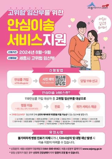 지역 내 고위험 임산부는 세종소방본부 누리집에서 사전 예약을 하면 누구나 안심 119이송서비스를 이용할 수 있다.