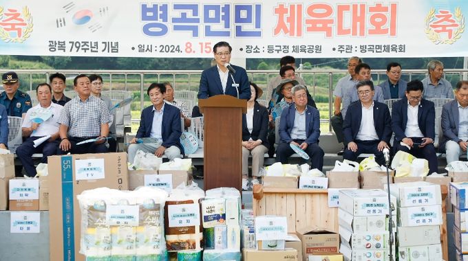 김용원 병곡면체육회장은 “참석해 주신 내빈들과 선수단 및 면민 여러분께 진심으로 감사드린다.”라며 “오늘 면민 체육대회는 8. 15를 기념하는 자리로서 면민 모두가 화합하여 더욱 뜻깊은 날이 되길 바란다.”라고 밝혔다.