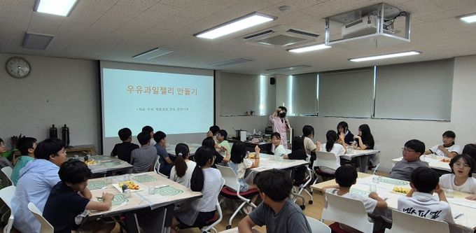 특히 ‘우유과일 젤리 만들기’ 실습을 통해 청소년들이 영양분에 대한 정보와 필요성을 쉽고 재미있게 이해할 수 있도록 했으며 여름철 식중독 원인과 예방 방법 6대 원칙(손 씻기, 끓여 먹기, 익혀 먹기 등)을 배워보는 시간도 함께 가졌다,
