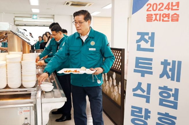 점심시간 직원 200여 명이 식량 부족 상황을 가정해 비상식량(주먹밥·고구마) 급식 체험을 하며 실전 감각을 익히고 안보의식을 고취했다.
