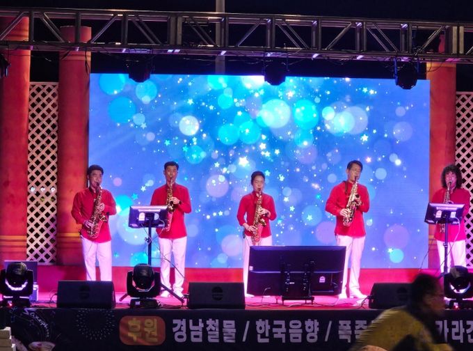 공연의 포문을 연 주관단체인 색소폰 앙상블 라르고의 임영웅 가수의 ‘별빛 같은 나의 사랑아’를 시작으로 두 번째 곡인 한국의 아름다움을 노래로 담아낸 ‘아름다운 강산’이 끝날 무렵 밤하늘을 아름답게 수놓은 축포가 터지면서 공연을 더욱 빛나게 했다.
