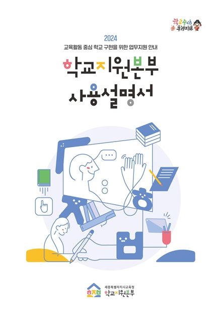 이러한 노력의 일환으로, 지원본부는 2024년 2학기를 맞아 학교 교육활동이 더욱 원활하게 이루어질 수 있도록 지원하기 위한 '2024 학교지원본부 사용설명서' 책자(이하 책자)를 발간하여 각급 학교에 보급하고 학교지원본부 누리집에도 탑재한다.