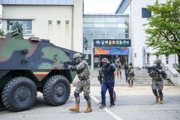 연습장인 장충남 군수를 비롯한 이남현 제8962부대 2대대장, 오성배 남해소방서장, 정영란 군의회의장 등이 참관했으며 현장에는 군용 장갑차와 소방펌프차, 구조차, 구급차, 굴절차, 복구차량 등 15대의 장비 등이 동원돼 실전 같은 열띤 분위기 속에서 훈련이 진행됐다.