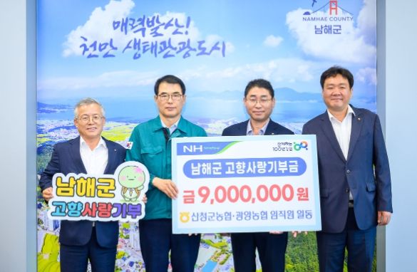 [경남도민뉴스=김부경기자] 남해군은 20일 산청군농협과 광양농협 직원들이 한마음 한뜻으로 모은 고향사랑기부금 900만 원을 기탁해 왔다고 밝혔다.