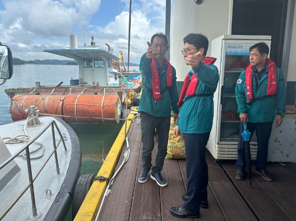 계속되는 연안 수온 상승으로 양식어업 피해가 우려됨에 따라 백종철 하동 부군수는 지난 20일, 해상가두리 양식 어장을 찾아 양식생물의 생육 실태를 점검하고 어업인과 현장 간담회를 진행했다.