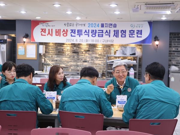 이날 오태완군수는 “이번 전투식량 시식 체험은 직원들과 함께 직접 경험하며 전시 상황에서 대비태세를 실감하는 좋은 계기가 되길 바란다”고 말하며 “을지연습에 더욱 집중하고 적극적으로 참여 해 줄 것“을 당부했다.