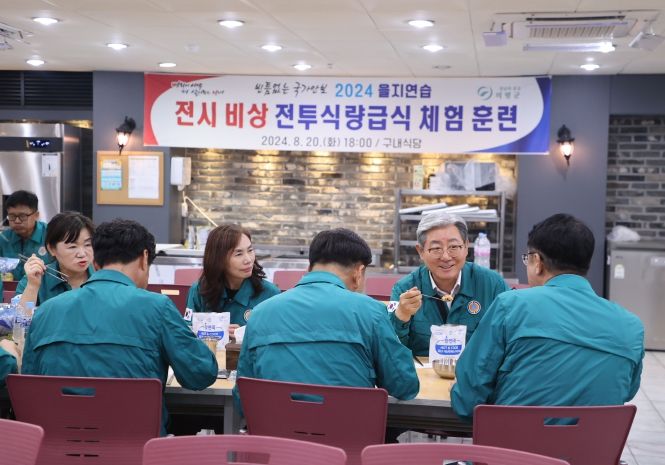 이날 오태완군수는 “이번 전투식량 시식 체험은 직원들과 함께 직접 경험하며 전시 상황에서 대비태세를 실감하는 좋은 계기가 되길 바란다”고 말하며 “을지연습에 더욱 집중하고 적극적으로 참여 해 줄 것“을 당부했다.