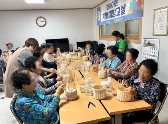 치매 진단을 받지 않거나 치매 고위험군을 제외한 60세 이상 지역주민을 대상으로 하는 찾아가는 치매예방교실은 웃음치료, 공예수업, 원예수업, 치매예방체조 등 어르신들의 기억력 증진 및 치매예방에 도움을 줄 수 있는 다양한 프로그램으로 구성된다.
