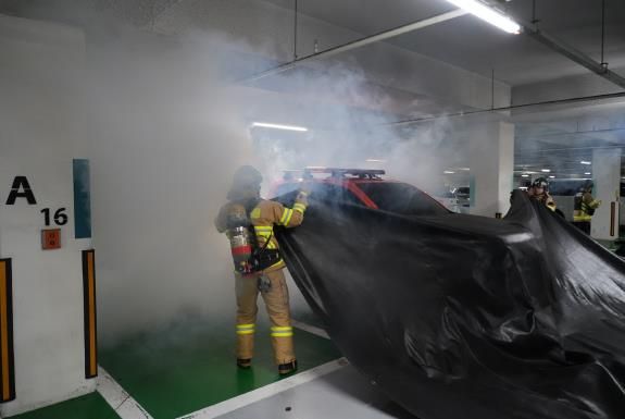 이에 따라 조치원소방서는 ▲공기를 차단하는 질식소화 덮개를 이용한 화재확산 저지 훈련 ▲상방향 관창을 이용한 배터리 냉각 훈련 ▲물을 채워 배터리를 냉각한 후 열폭주를 방지하는 조립형 수조 활용 훈련 등 다양한 방법으로 단계별 전기차 화재대응 훈련을 진행했다.