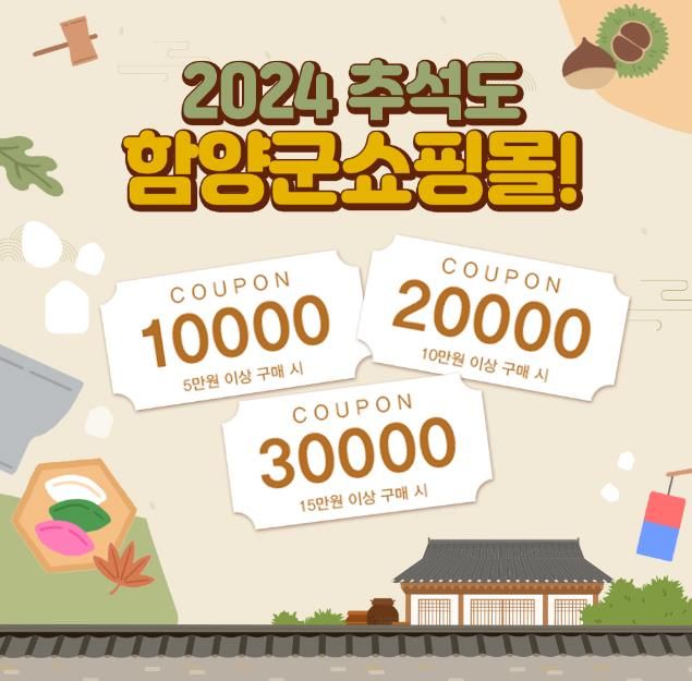 이벤트 기간 함양군쇼핑몰에서 물건을 구매하는 고객은 최대 6만 원의 할인 혜택을 받을 수 있다.