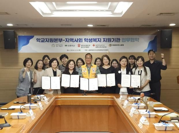 이번에 세종학교지원본부와 업무협약을 맺은 기관은 ▲대한적십자사 세종시지구협의회 ▲세이브더칠드런 중부지역본부 ▲이화라이온스클럽 ▲초록우산 세종지역본부 등 총 4곳이다.