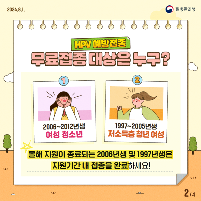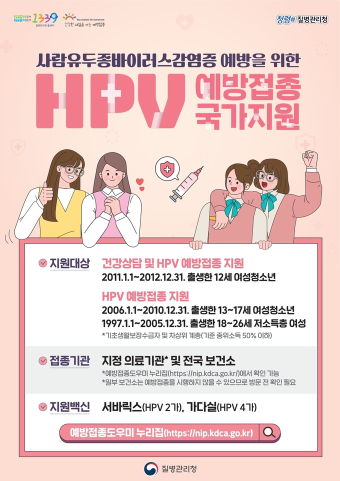 특히, 올해 마지막 지원 대상인 2006년생 여성 청소년과 1997년생 저소득층 여성은 12월 31일까지 지정의료기관·보건소에서 무료 예방접종을 받길 권고했다.