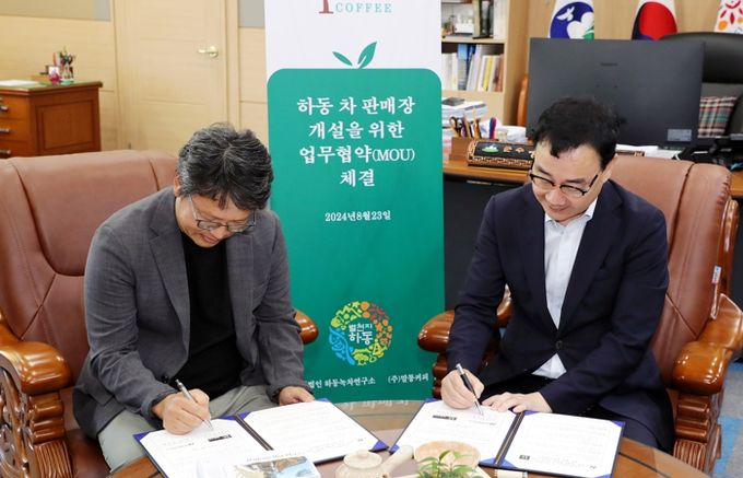 (재)하동녹차연구소는 지난 23일 하동군청에서 성장 프랜차이즈 ㈜말통커피와 하동 차(茶)를 활용한 메뉴 개발 및 티 카페 개설을 위한 양해각서(MOU)를 체결했다고 밝혔다.