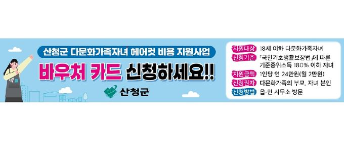 [경남도민뉴스=장광동 기자] 산청군은 오는 9월 ‘다문화가족자녀 헤어컷 비용 지원사업’을 첫 시행한다고 26일 밝혔다.