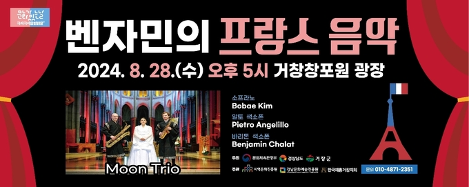 구인모 거창군수는 “한여름 무더위를 잠시나마 잊고, 프랑스 음악을 감상하며 힐링하는 시간이 되시길 바란다”라며 “남은 구석구석 문화배달 프로그램도 많은 관심과 관람을 바란다”라고 전했다.