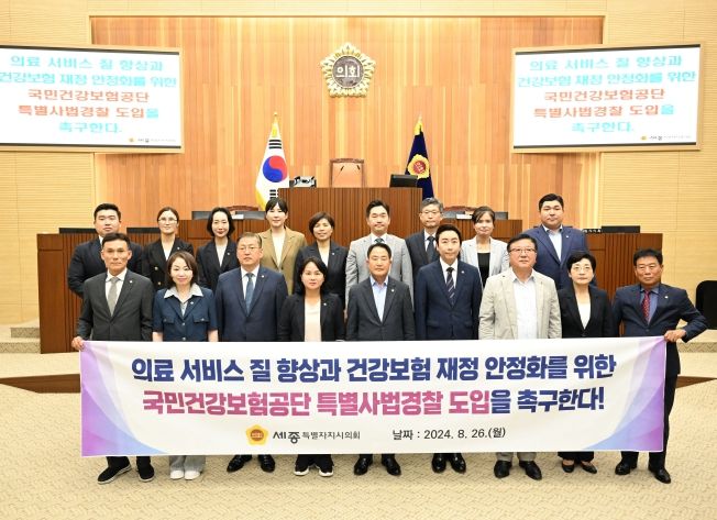 한편, 세종시의회는 ‘국민건강보험공단 특별사법경찰도입 촉구 결의안’을 국회의장과 국무총리, 보건복지부, 법무부, 국민건강보험공단 등에 이송할 예정이다.