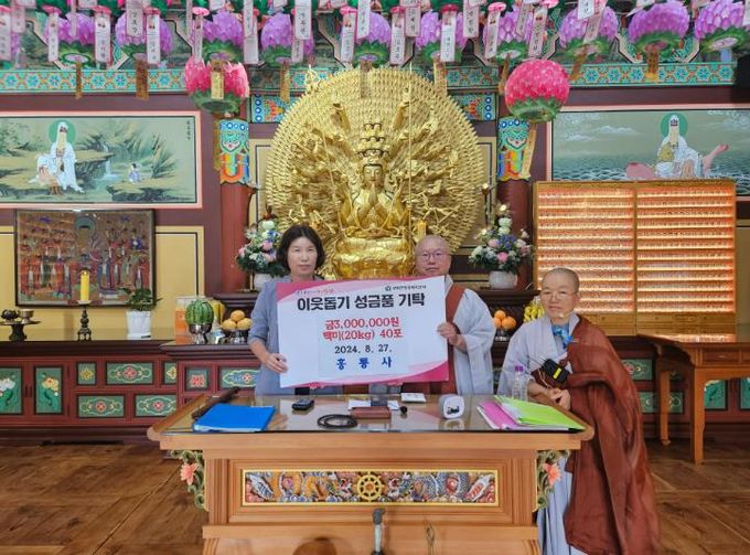 법진스님은 “신도들과 함께 부처님의 자비를 베풀 수 있어 더할 나위 없이 기쁘다”며 “작은 도움이지만 신도들과 십시일반 모은 후원금과 쌀을 어려운 이웃을 위해 잘 전달해주길 바란다”고 전했다.