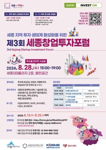 김현기 경제산업국장은 “세종 창업 투자포럼 활성화는 우리 시 창업기업들의 투자 유치에 큰 보탬이 될 것”이라며 “앞으로 포럼을 더욱 활성화해 청년 창업가들과 초기 기업들이 성장할 수 있는 환경을 조성하고 외부 투자 유치로 이어지는 선순환 구조를 구축하도록 하겠다”고 말했다.