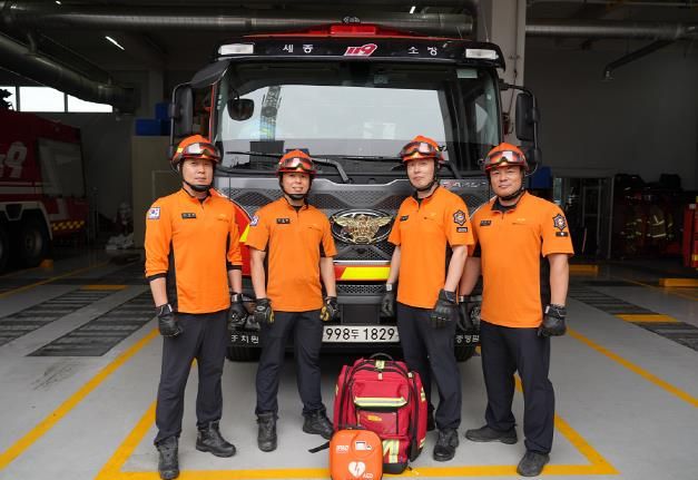 현장에 도착한 대원들은 심정지 상태의 남성에게 가슴압박과 함께 심장충격기를 사용해 A씨의 맥박과 호흡을 되살렸다.