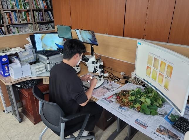 이에 따라 산청군은 명품딸기 생산을 위해 검경 기술 서비스를 무료로 제공하고 있다.