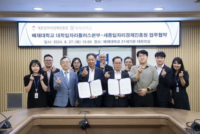 [경남도민뉴스=도문호 기자] 세종일자리경제진흥원과 배재대학교는 지역 청년의 취업역량강화 및 노동시장 진입 지원을 위한 상호 협력을 위해 업무협약을 체결했다.