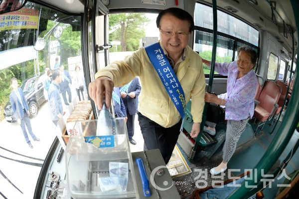 양동인 군수는 웅양면 하성농협 앞에서 서흥여객 터미널까지 천원버스 시행을 기념하는 시승을 하면서, 군민들과 함께 일일도우미로 동행했다.