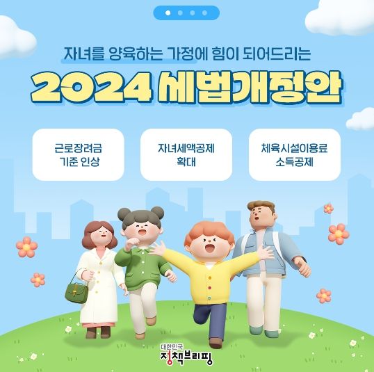 [경남도민뉴스=경남도민뉴스 기자] 근 정부가 발표한 2024 세법개정안 내용 중 자녀를 양육하는 가정에 도움되는 세제혜택 내용을 가져왔습니다.