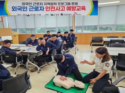 이번 교육은 고성소방서와 SK기술교육원의 협조로 이루어졌으며 SK기술교육원에서 조선 관련 교육을 받고 있는 베트남 외국인 근로자 20명을 대상으로 화재 발생 시 119 신고 방법, 대피요령, 화재진화 소화기 사용방법, 응급환자 심폐소생술 교육 등 현장에서의 안전사고 예방 및 대처 방법을 교육했다.
