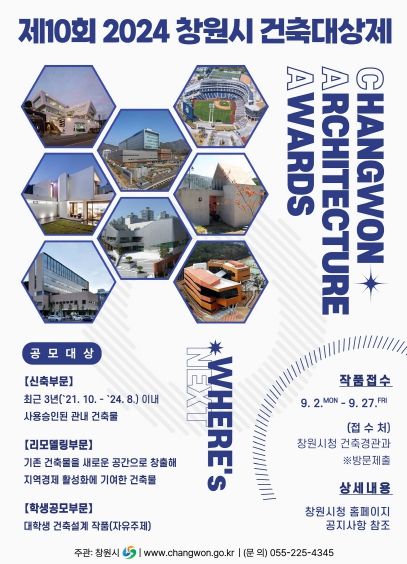 [경남도민뉴스=박민호 기자] 창원특례시는 오는 9월 2일부터 27일까지 ‘제10회 창원시 건축대상제’각 부문별 작품을 공모한다고 밝혔다.