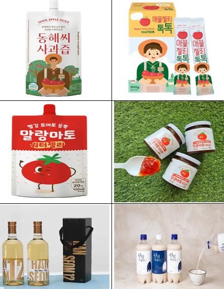 농산물가공지원센터에서는 우선 사과를 이용해 동해씨사과즙, 애플젤리톡톡, 수평선사과잼을 생산하고 있다.