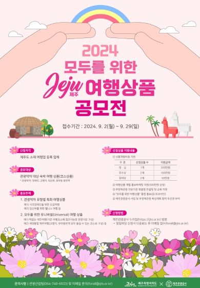 이와 관련, 제주관광공사 관계자는 “2026년에 전국체전·장애인체전이 제주에서 개최되며, 제주를 방문하는 관광약자의 여행수요도 점점 증가하는 추세인 반면, 관광약자를 위한 여행상품은 많이 부족한 실정이다.”며, “이번 공모전을 통해 관광약자를 위한 여행상품이 많이 발굴되어 제주를 여행하고 싶은 관광약자를 비롯한 모두가 편하게 제주를 여행할 수 있게 되길 바란다”고 전했다.