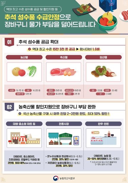 · 대형마트, 농협 등 20~50% 할인판매(8.30.~9.16.)