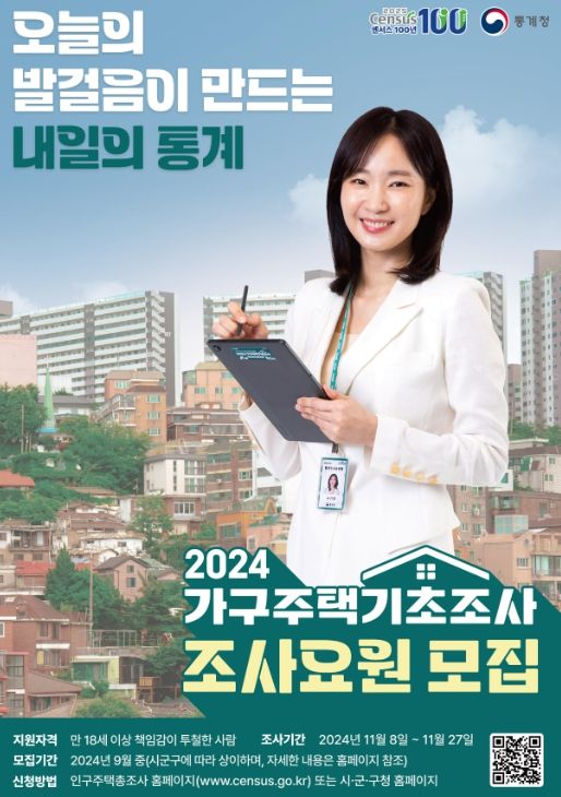 모집 인원은 조사관리자 3명, 조사지원관리자 1명, 조사가구를 직접 방문해 조사표를 작성하는 조사원 22명(예비조사원 2명 포함)이다.
