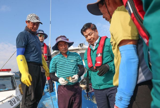 [경남도민뉴스=이형섭 기자] 이상근 고성군수는 9월 2일 자란만 굴 폐사 발생 현장을 방문하여 어업인들을 격려했다. 고성군 자란만에서는 지난 8월 초부터 발생한 산소 부족 물덩어리로 추정되는 이상조류로 인해 양식 중인 굴이 폐사하는 피해가 발생했다. 현장을 방문한 이상근 고성군수는 폐사한 양식굴을 직접 확인하고, 실의에 빠진 어업인들을 위로하며 애로사항을 청취하며 신속한 복구 및 지원에 대해 논의했다.