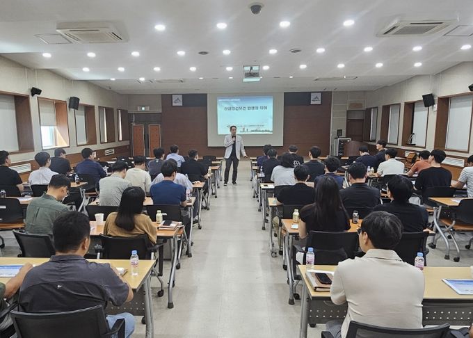 이날 교육은 오세창 대전고용노동청 산재예방지도과장이 산업안전보건법 및 고용노동부의 안전보건 정책방향 설명, 최신정보 안내 뿐만 아니라 특별사법경찰로서의 실무경험을 바탕으로 한 사례 위주의 교육을 실시해 현장에서 적용할 수 있는 실질적 지침을 안내했다.