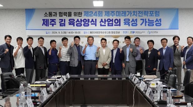 ‘제주 김 육상양식 산업의 육성 가능성’을 주제로 한 이날 포럼에서 전문가들은 제주 수산식품산업의 장기적인 성장과 부가가치 증대를 위해 제주특산 용암해수와 도내 육상 양식장을 활용한 김 육상양식산업 육성을 강조했다.