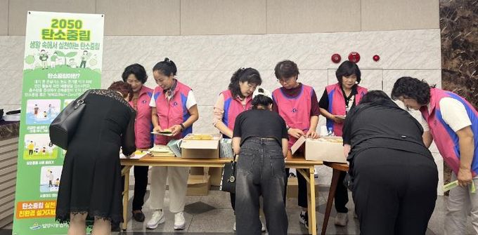 이날 회원들은 탄소중립 실천 서명 운동을 장려하고, 홍보물과 친환경 설거지 바를 나눠주며 탄소중립 실천의 필요성과 일상 속 실천 방법을 알렸다.
