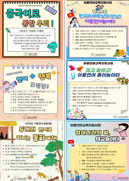 이중언어 부모ㆍ가족 코칭은 ▲ 엄마나라의 말, 태교놀이터 ▲ 두 개의 언어로 떠나는 동화여행 ▲ 한국과 베트남의 만남! ▲ 접고 말하고! 이중언어 종이놀이터 등 총 6개의 프로그램으로 진행될 예정이다.