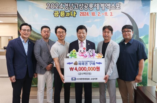 한종현 지부장은 “2024 경남고성공룡세계엑스포가 지역의 대표 축제로 성공하기를 바라는 마음에서 예매권을 구매하게 됐다”며, “엑스포를 통해 고성군의 위상과 매력이 더 널리 알려지기를 바란다”고 전했다.