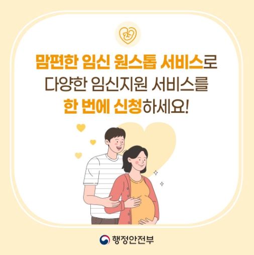 임산부가 온라인(정부24) 또는 방문 신청(주민센터·보건소)을 통해 임신 후 받을 수 있는 각종 임신 지원 서비스를 한 번에 안내 받고 통합 신청하는 서비스입니다.