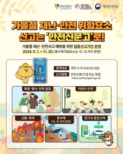 가을철 재난·안전 위험요소 집중신고 기간