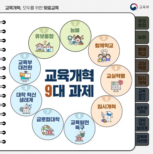 - 데이터 기반의 교육 정책을 추진하고, 교육청·지자체·대학·타부처 등과 수평적 파트너십을 형성하며, 글로벌 교육 선도국의 리더십을 발휘하는 교육부로 거듭나겠습니다.