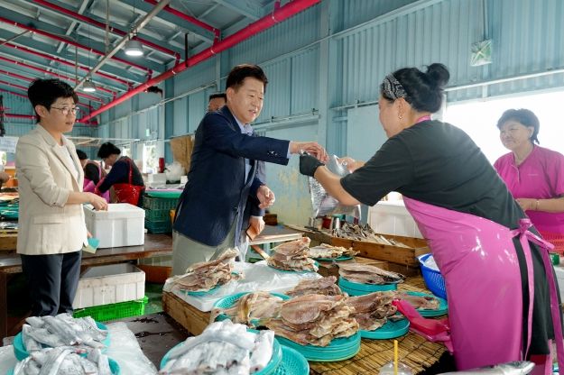 간담회 후 오영훈 지사는 표선오일시장을 직접 둘러보며 고객 과 상인들의 다양한 의견을 청취했다. 지역 노인복지시설에 전달할 수산물과 채소, 과일, 건어물 등 식자재를 구입하며 지역 경기와 물가동향도 살폈다.