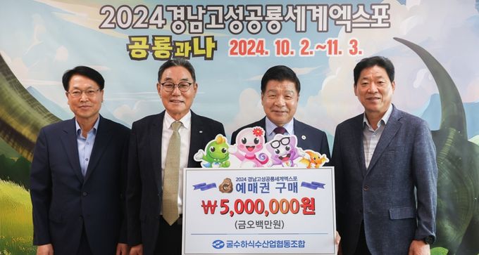 [경남도민뉴스=이형섭 기자] 굴수하식수산업협동조합이 2024 경남고성공룡세계엑스포의 성공적인 개최를 응원하며 500만 원 상당의 예매권을 구매했다. 이번 예매권 구매는 6일 진행됐으며, 고성군과 인근 지역 간의 상생 협력과 엑스포의 성공을 기원하는 의미를 담았다.